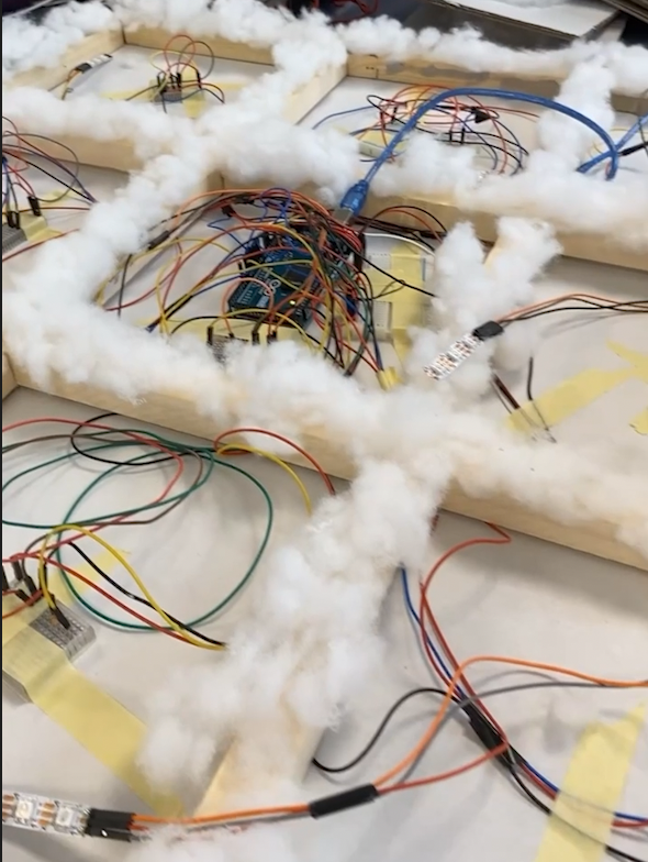 The second electronic component on the pressure plate is the 3 LED strips. They are used to display the score on the tile. When a hit is detected, one LED will light depending on the player’s turn. It is set as an automatic loop; the turn will change every time a tile is hit. When the ball hits the tile, the LED will light as the color of the player turns (Blue for player 1 and red for player 2).