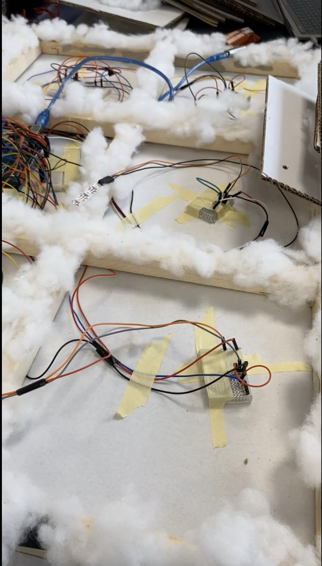 The pressure plate is built with a piezo sensor to detect if the player hits the target. At first, I created a proof of concept prototype for one pressure plate to test the range of value for when it is hit.