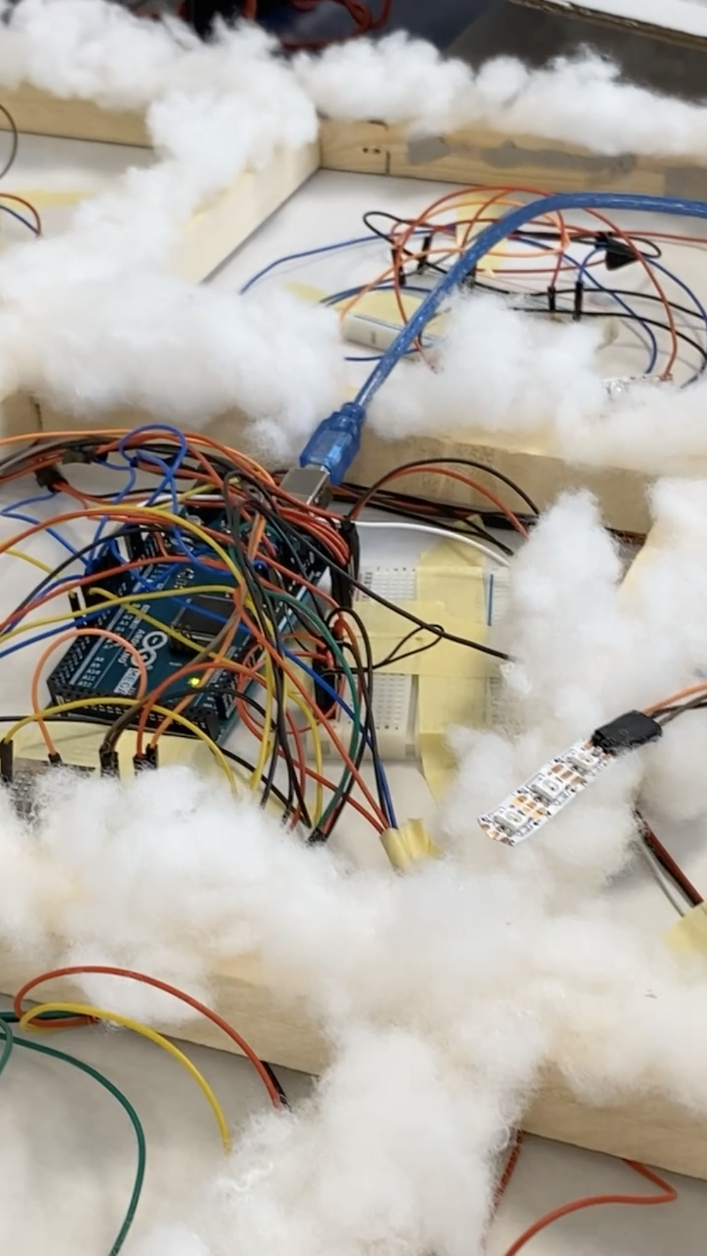 The second electronic component on the pressure plate is the 3 LED strips. They are used to display the score on the tile. When a hit is detected, one LED will light depending on the player’s turn. It is set as an automatic loop; the turn will change every time a tile is hit. When the ball hits the tile, the LED will light as the color of the player turns (Blue for player 1 and red for player 2).