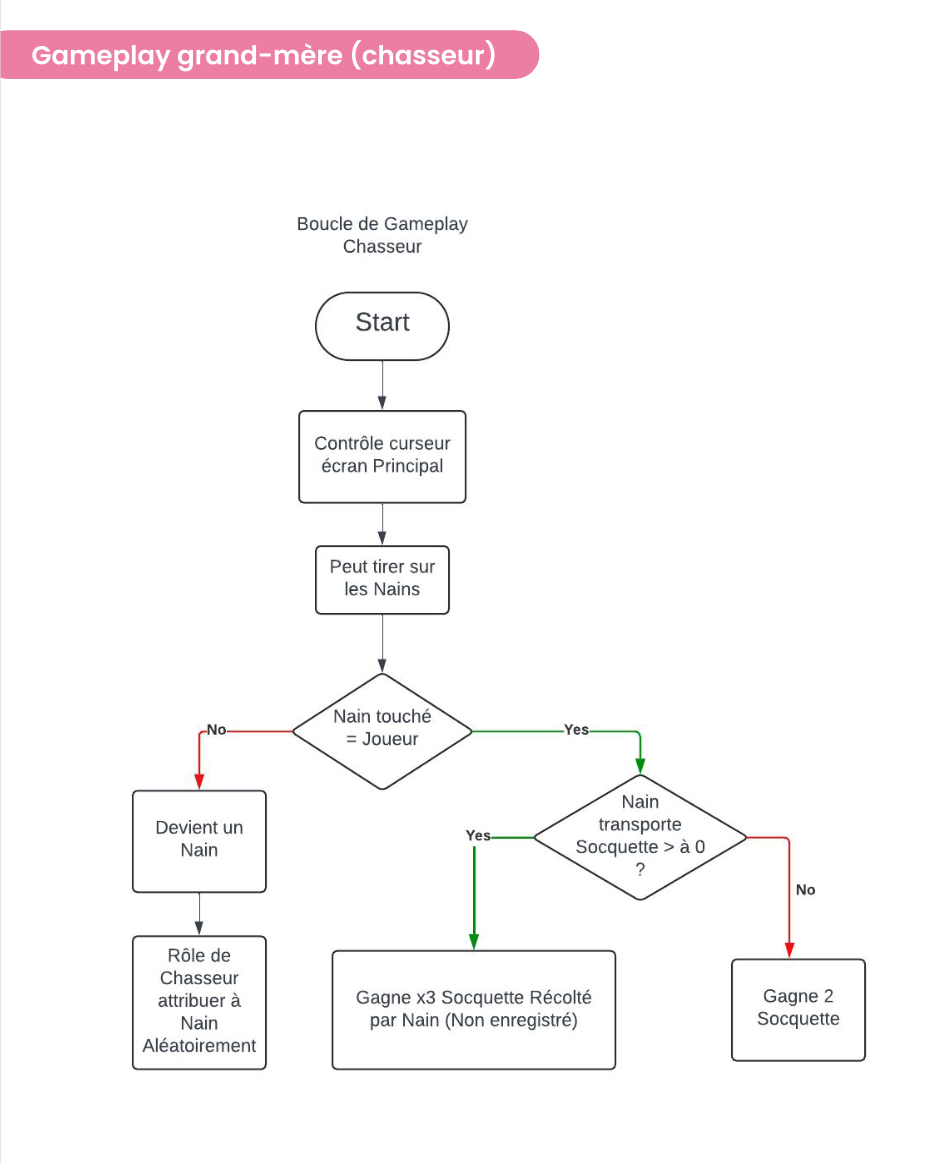 Upon his arrival in the game, the player is randomly assigned the role of Grandma or a gnome, each having a different gameplay loop.