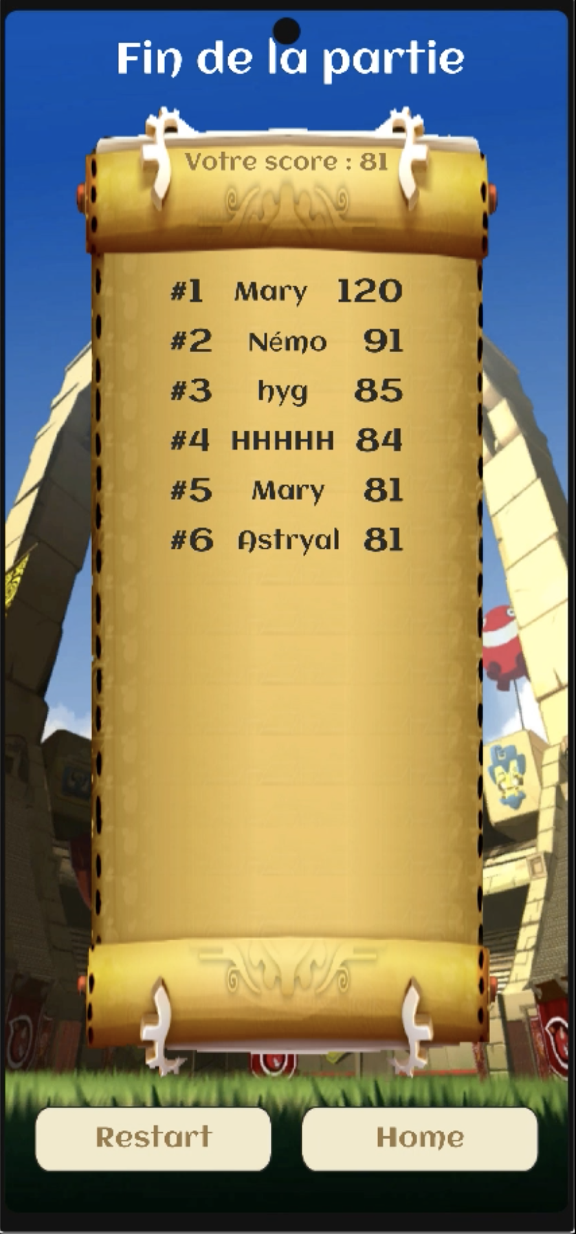 Inspired by an arcade game, Whackbouf brings a challenge between players by displaying a scoreboard at the end of the game. The player defines a name upon entering the game; it will be stored and linked to the score’s session. When the timer ends, the scoreboard screen displays the first 10 players with the highest score.
